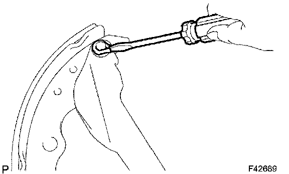 a) Remove the parking brake shoe strut set from the brake shoe (rear).