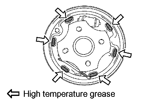 a) Apply high temperature grease to the shoe attached surface of the backing plate.