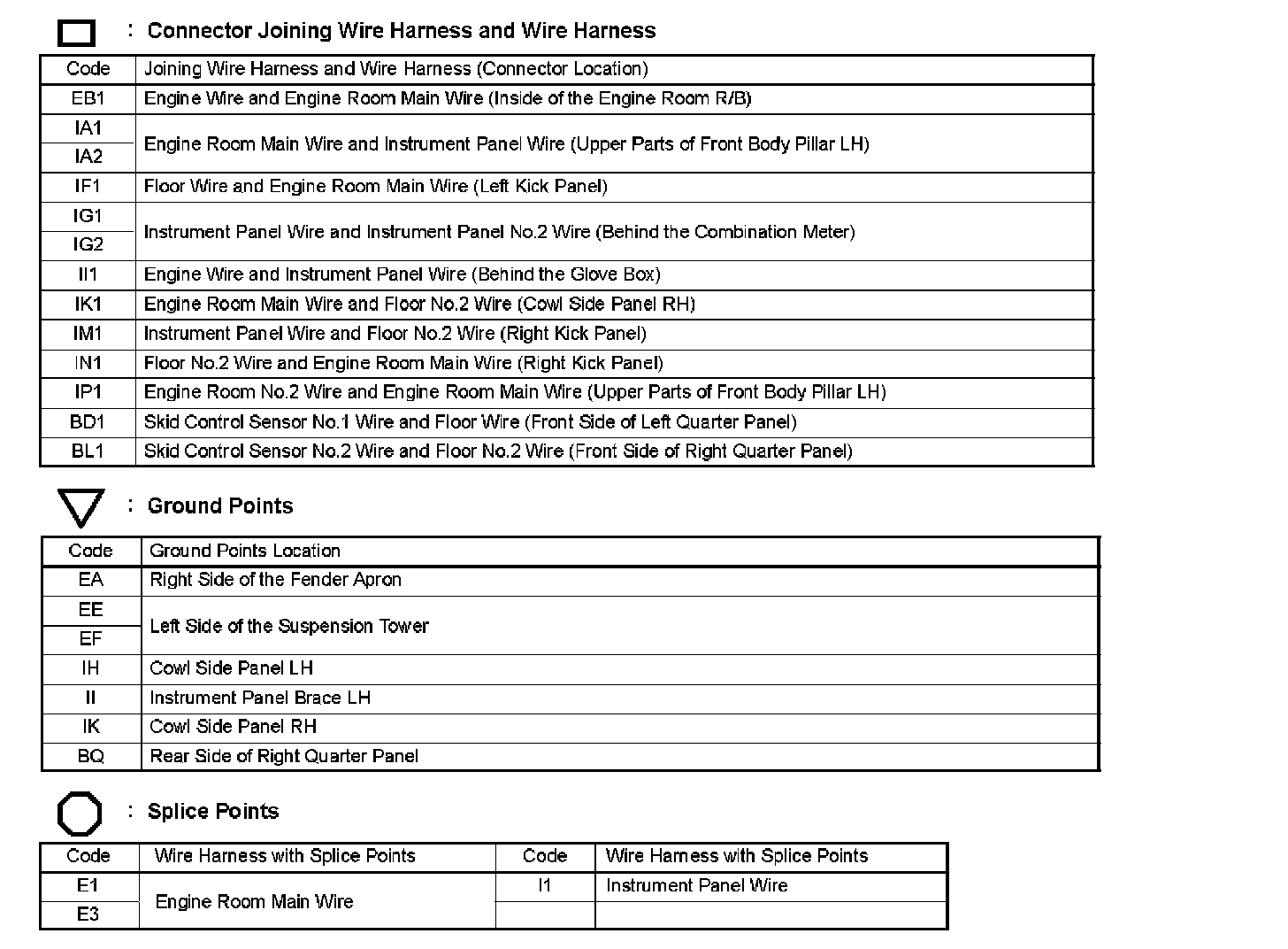 Locations: The locations of components, connectors, ground points, and splices referred to within these diagrams can be found at Vehicle Locations. Locations
