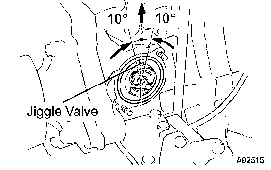 HINT: The jiggle valve may be set within 10° of either side as illustrated.