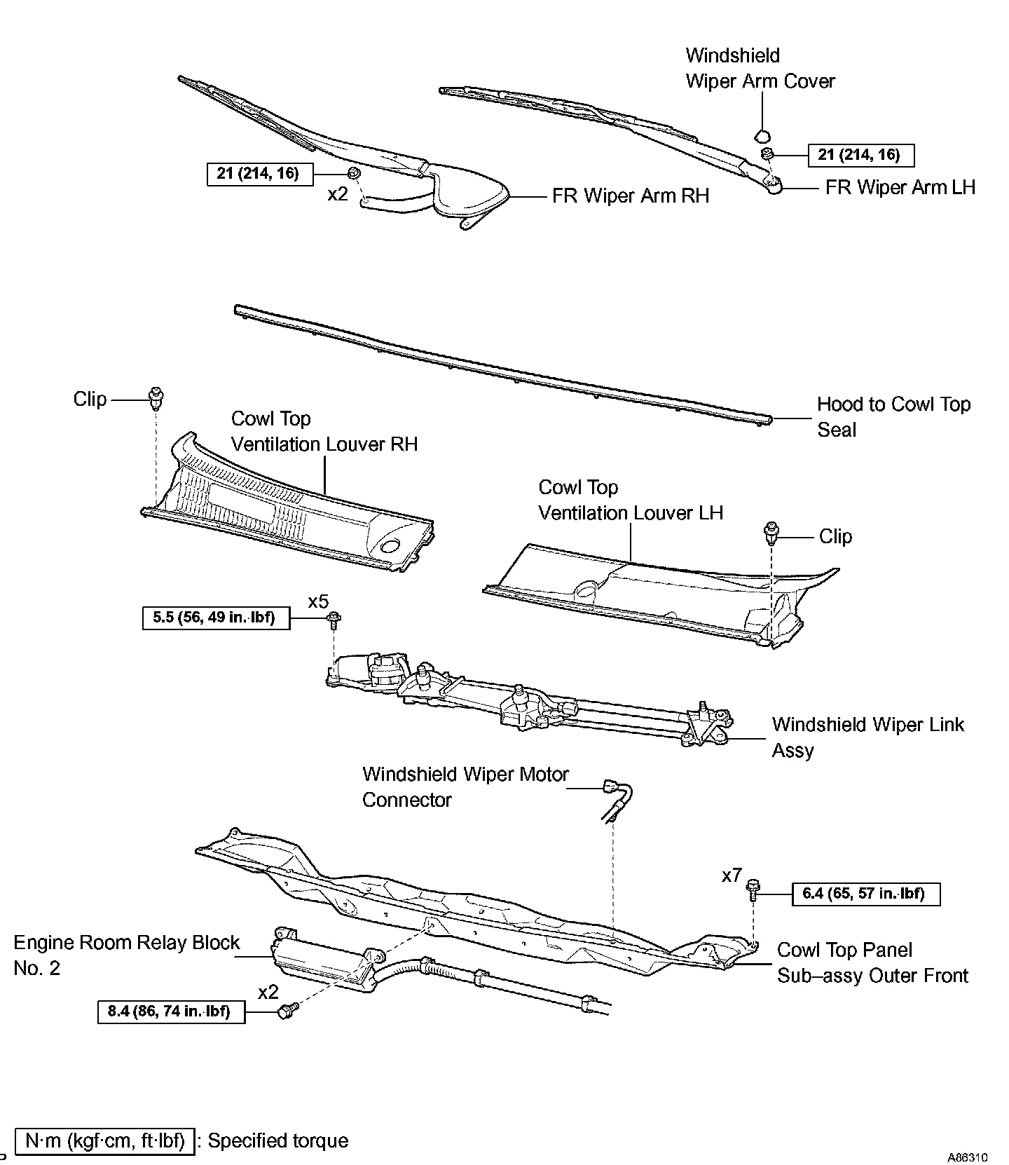 Torque: 10 Nm (102 kgf-cm, 7.4 ft. lbs.)