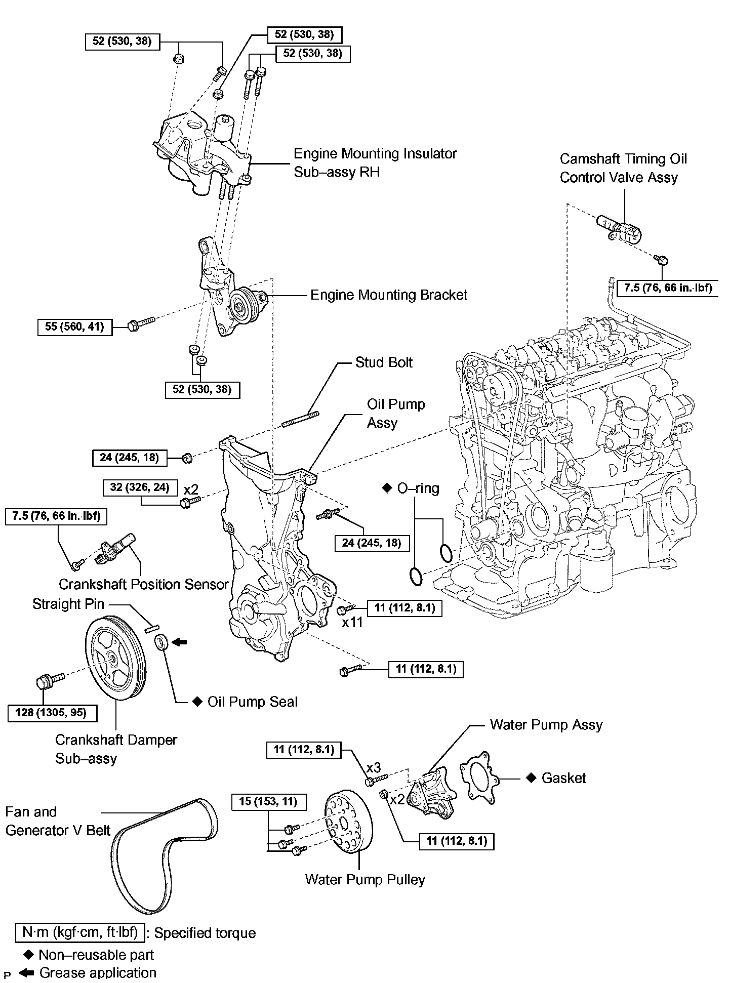 Torque: 55 Nm (561 kgf-cm, 41 ft. lbs.)
