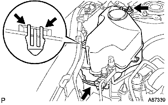 c. Separate the claw fitting, then suspend the brake master cylinder reservoir with rope.