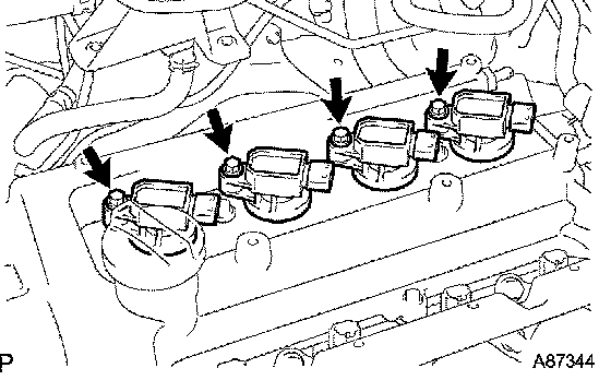 b. Remove the bolt and camshaft timing oil control valve assembly.