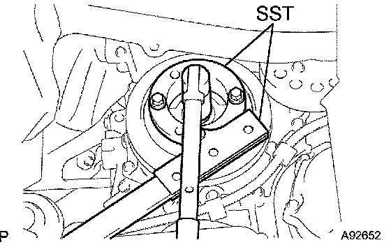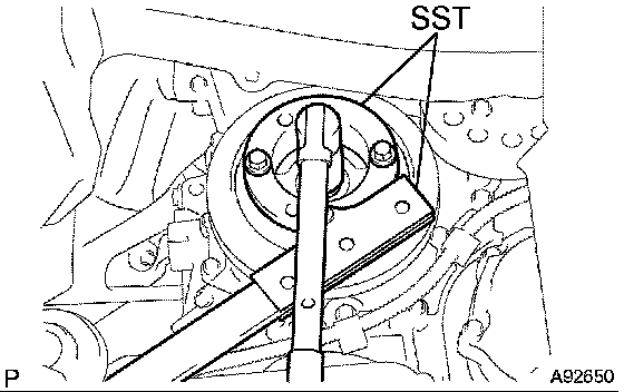 b. Using SST, hold the crankshaft damper and tighten the crankshaft bolt.