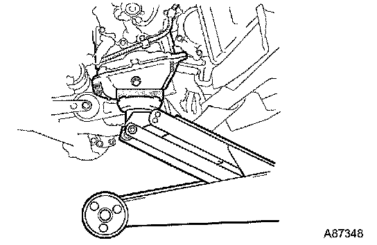 a. Put a wooden block on a jack underneath the oil pan to support the oil pan.