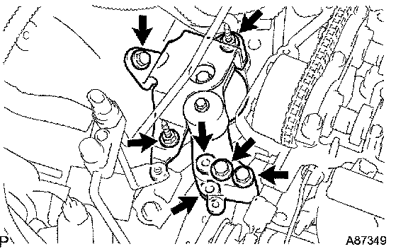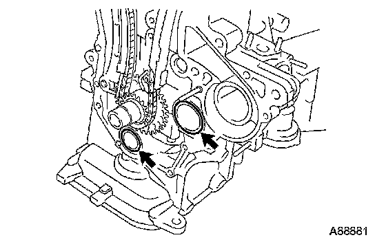 NOTICE: Be careful not to damage the contact surfaces of the oil pump assembly, cylinder head and cylinder block.