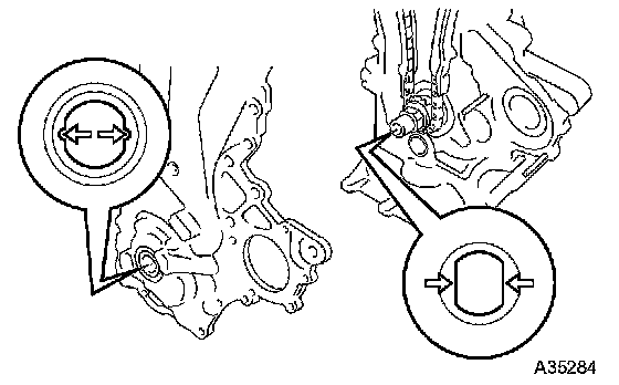 c. Align the drive rotor spline of the oil pump with the rectangular portion of the crankshaft, then slide the oil pump assembly into place.