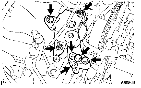 ^ Install the engine mounting bracket RH and water pump assembly within 15 minutes after installing the oil pump assembly.