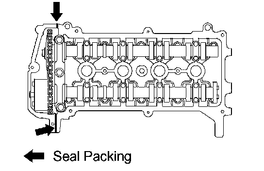 a. Apply seal packing to the 2 locations as shown in the illustration, then install the cylinder head cover.