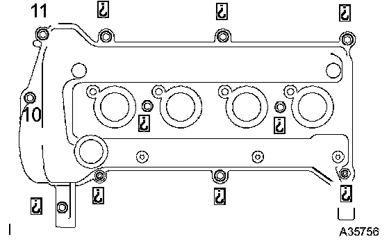 ^ Install the cylinder head cover within 3 minutes after applying seal packing.