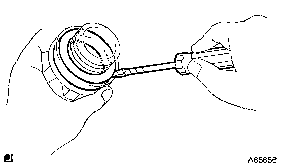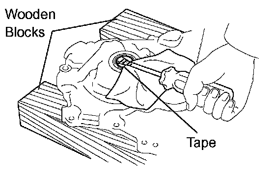 a. Using a screwdriver with its tip wrapped in tape, remove the oil seal.