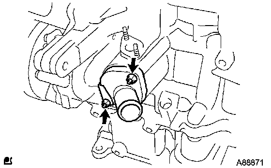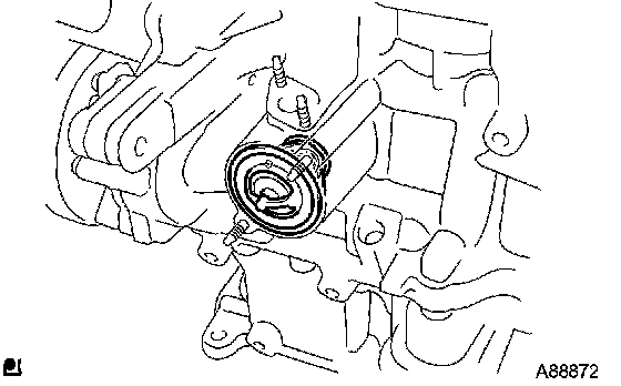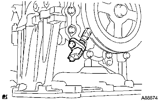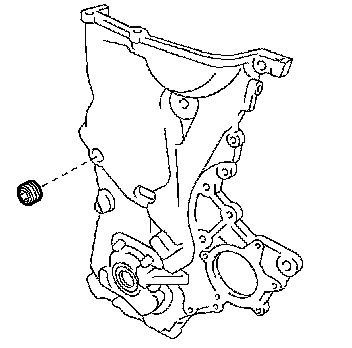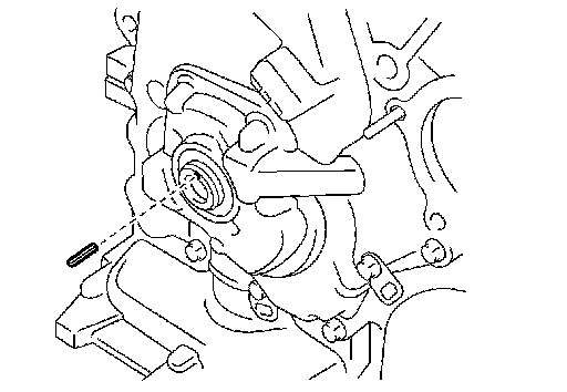 b. Using a screwdriver with its tip wrapped in tape, remove the oil pump assembly by prying out between the cylinder head and cylinder block.