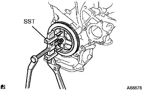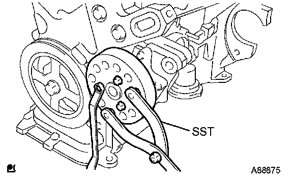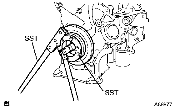 b. Using SST, hold the crankshaft damper and loosen the crankshaft bolt.