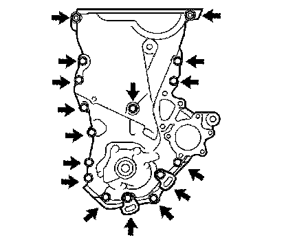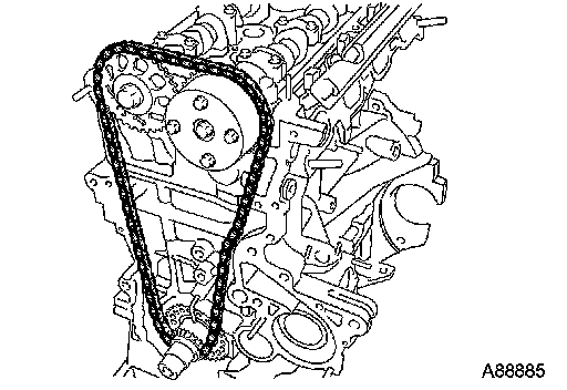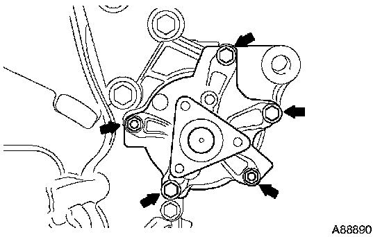 NOTICE: Be careful not to damage the contact surfaces of the oil pump assembly, cylinder head and cylinder block.