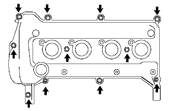 a. Remove the 9 bolts and 2 nuts, then remove the cylinder head cover.