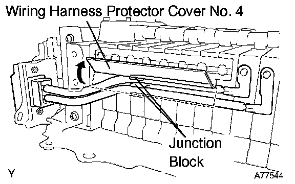 c. Flip open the wiring harness protector cover No. 4 shown in the illustration, then remove the service plug from the junction block.