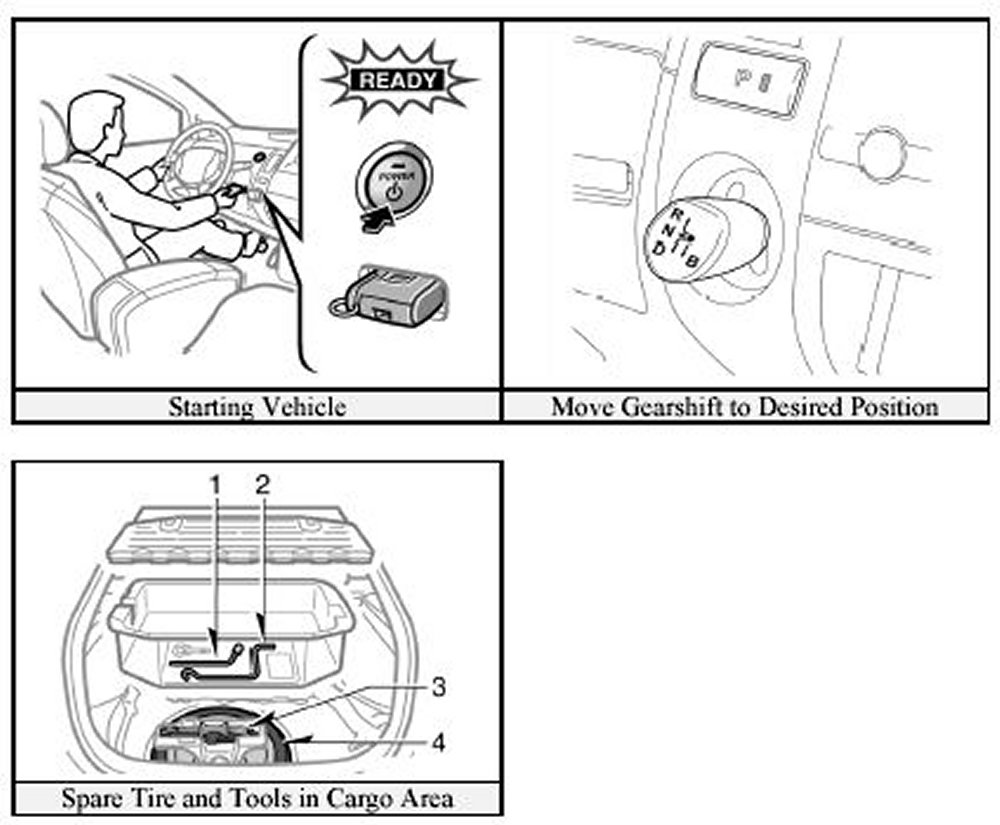 The Prius utilizes an electronic gearshift selector and an electronic P switch for park. If the 12-Volt auxiliary battery is discharged or disconnected, the vehicle cannot be started nor can it be shifted out of park. If discharged, the 12-Volt auxiliary battery can be jump started to allow vehicle starting and shifting out of park. Most other roadside assistance operations may be handled like conventional Toyota vehicles.