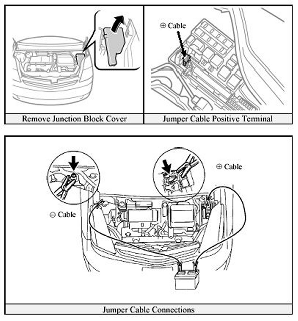 - Remove the junction block cover and connect the positive jumper cable to the positive terminal in the junction block.