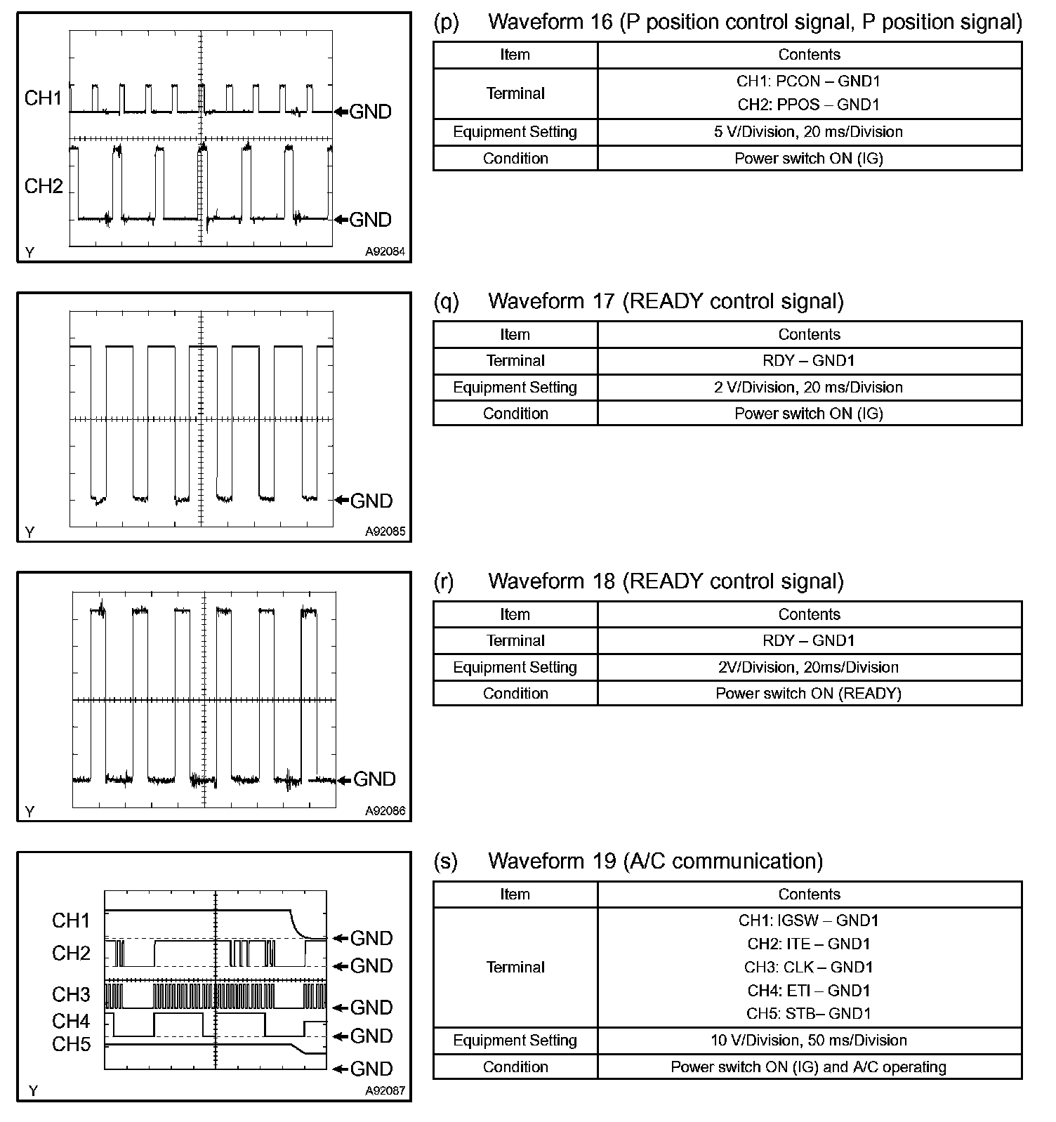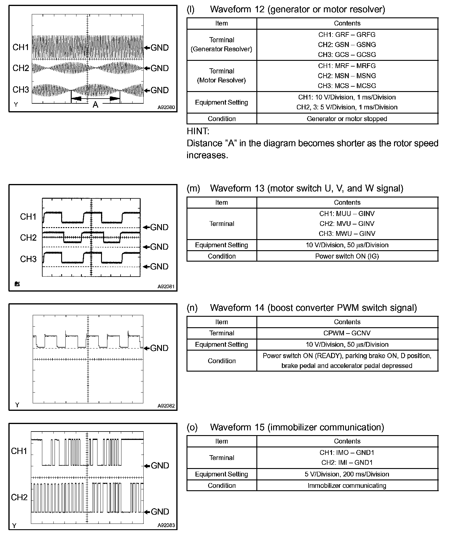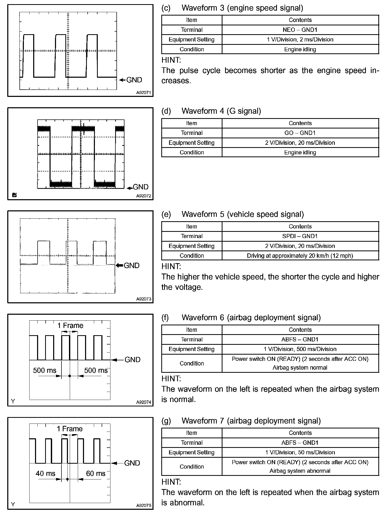 HINT: In the oscilloscope waveform samples, which are provided here for informational purposes. Noise and fluttering waveforms have been omitted.