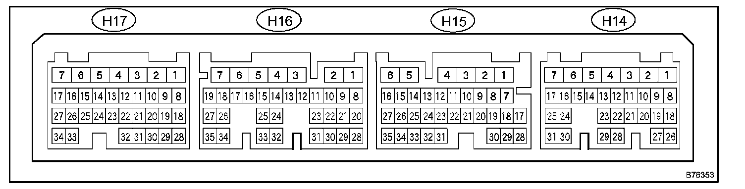 a. Disconnect the H14, H15, H16 and H17 ECU connectors.