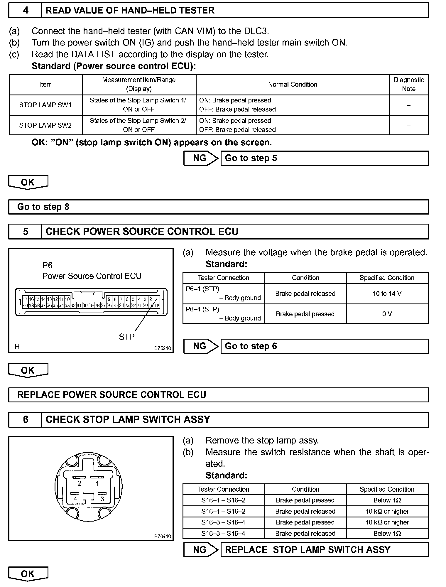 When the key is inserted into the key slot and the power switch is pressed, signals are input to the power source control ECU and power switch mode changes to OFF, ON (IG) or ON (ACC) or according to the inputs.