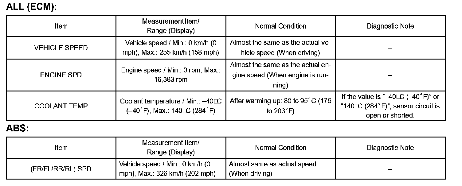 DATA LISTAccording to the DATA LIST displayed by the hand-held tester, you can read the value of the switch, sensor, actuator and so on without parts removal. Reading the DATA LIST as the first step of troubleshooting is one method to shorten work time.
