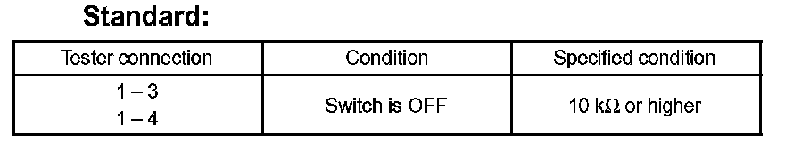 c. Connect the battery positive (+) lead from the battery to the terminal 1 and battery negative (-) lead to the terminal 4, then check that the illumination comes on when switch is in the ON position.