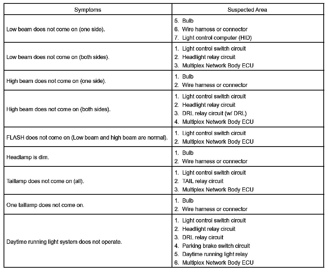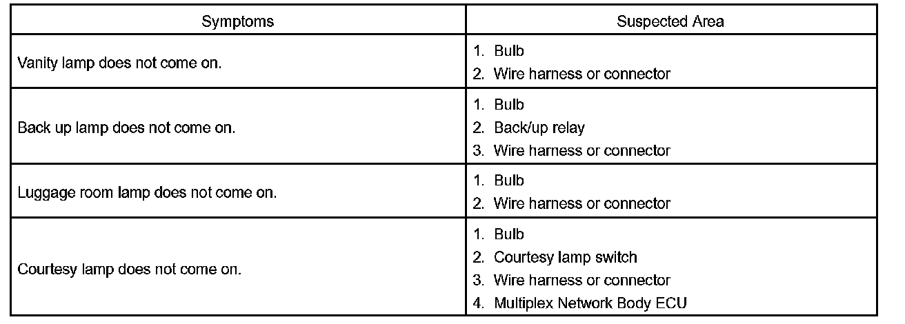 PROBLEM SYMPTOMS TABLEProblem Symptoms Table - Head Lamp And Tail Lamp System: