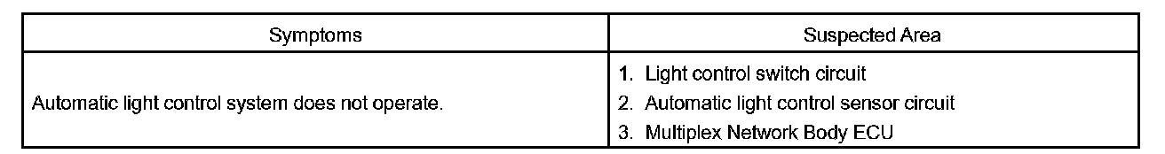 Problem Symptoms Table - Automatic Light Control System: