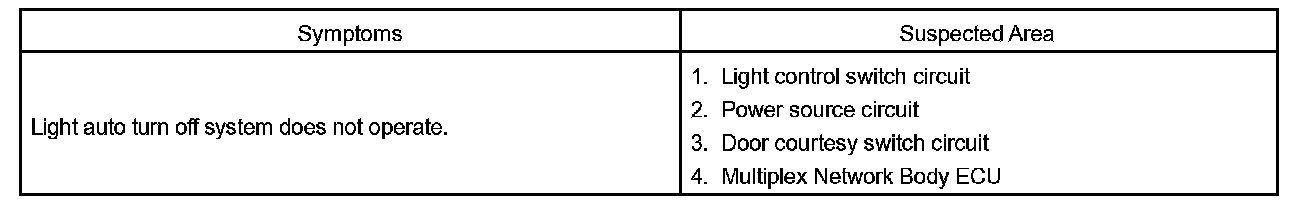 Problem Symptoms Table - Light Auto Turn Off System: