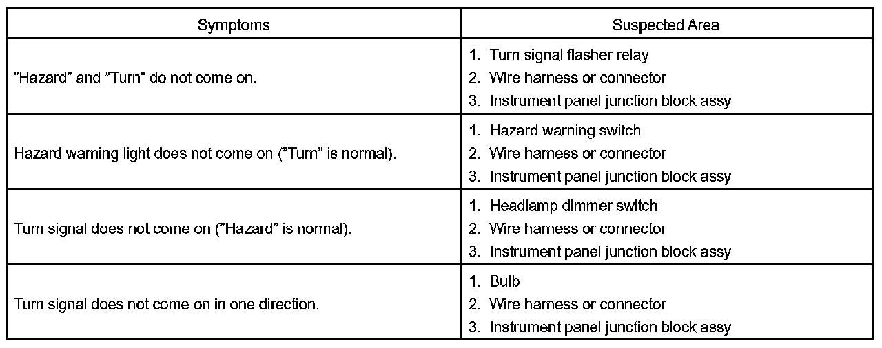 Problem Symptoms Table - Turn Signal Lamp And Hazard Warning System: