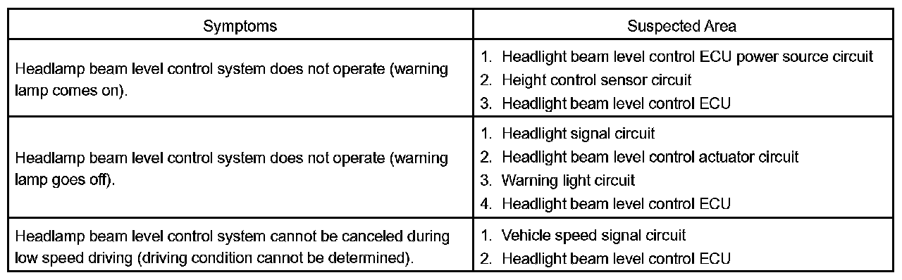 Problem Symptoms Table - Headlight Beam Level Control System:
