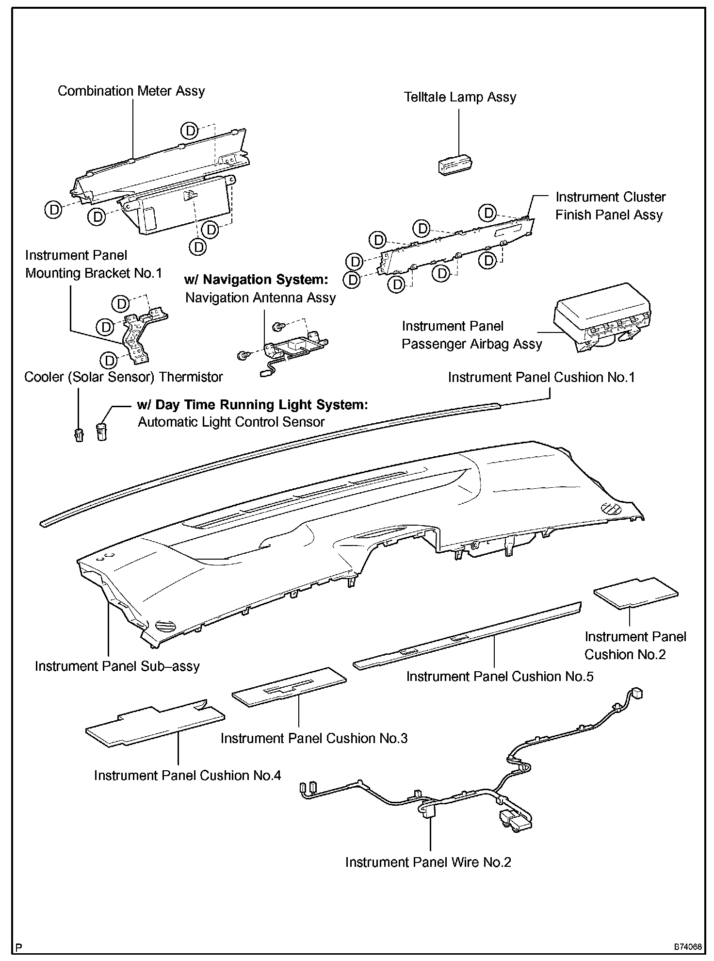 1. REMOVE INSTRUMENT PANEL SUB-ASSY W/PASSENGER AIRBAG ASSY