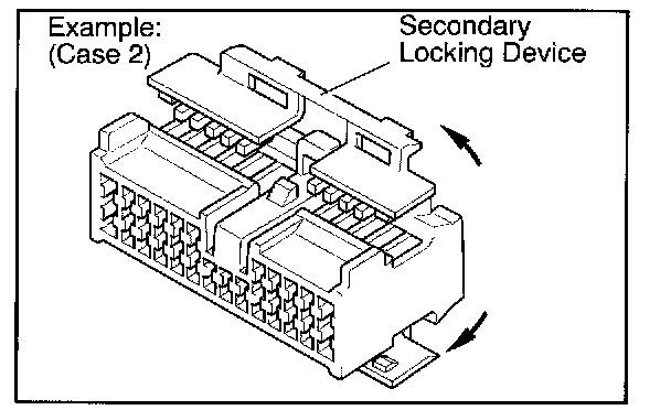 b. Use a special tool or the terminal pick to unlock the secondary locking device or terminal retainer.