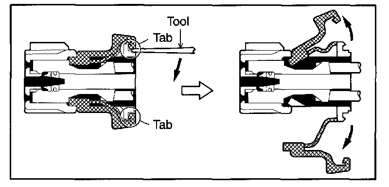 NOTE: Do not remove the terminal retainer from connector body.