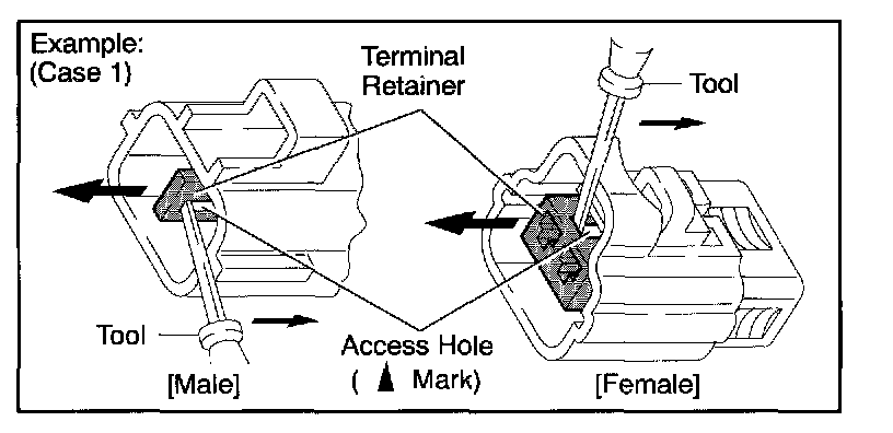 Type which cannot be pulled as far as Power Lock insert the tool straight into the access hole of terminal retainer as shown.