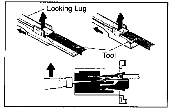 a. Locking device must be disengaged before the terminal locking clip can be released and the terminal removed from the connector.