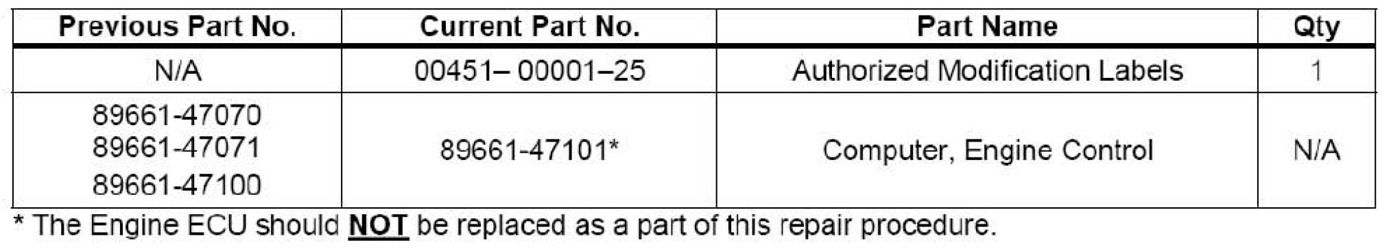 - ECM (PCM) part number 89981-47070 (or newer part number).