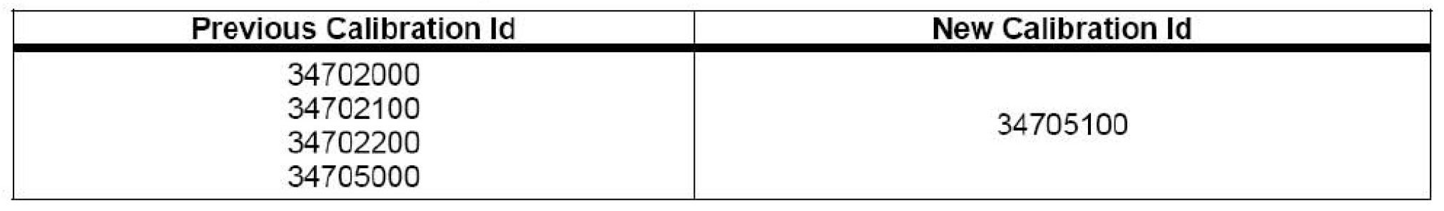 - Calibration number 34705100 (or newer calibration).