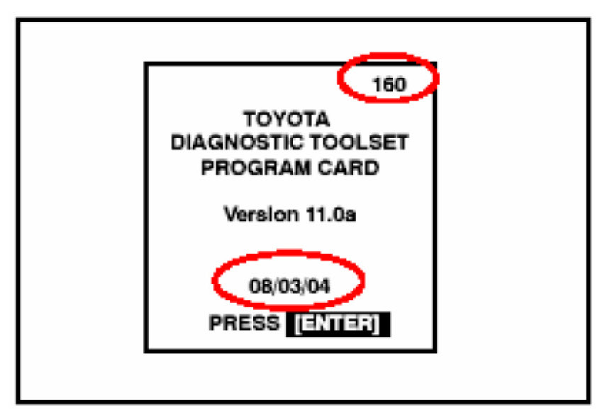 9. Press the "ENTER" key on the Diagnostic Tester (after the screen is displayed and the newest version of software, 11.0a, is confirmed, as shown in step 5).
