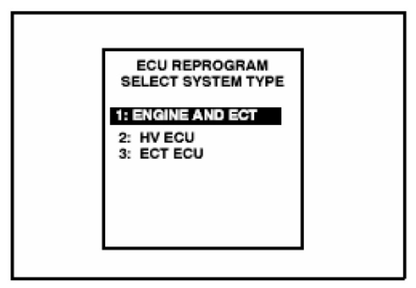 11. Select "1. ENGINE AND ECT" from the "ECU REPROGRAM SELECT SYSTEM TYPE" menu.