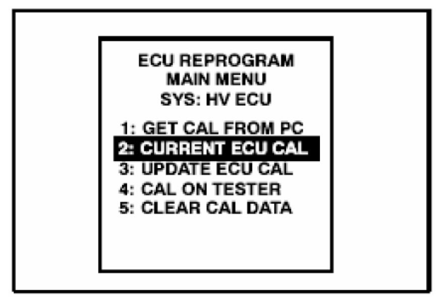 12. Select "2. CURRENT ECU CAL" from the "ECU REPROGRAM MAIN MENU."