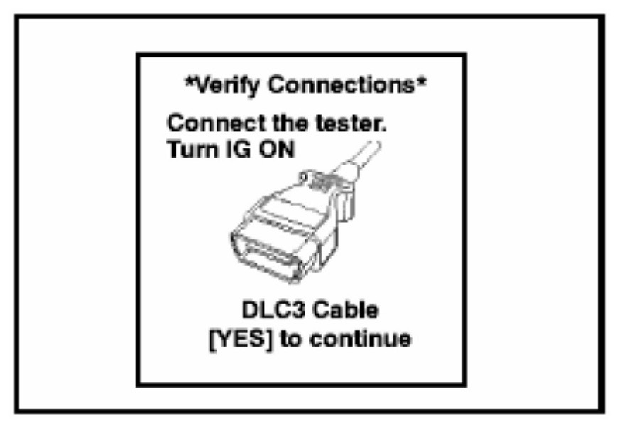 6. Confirm that the Diagnostic Tester displays the appropriate vehicle type. If it is not the correct vehicle, please refer to TSB No. 0941 "ECU Flash Reprogramming Process" to update the Diagnostic Tester.
