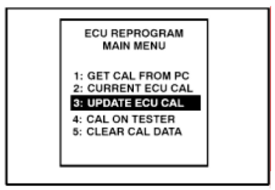 2. Select "3. UPDATE ECU CAL' from the "ECU REPROGRAM MAIN MENU."