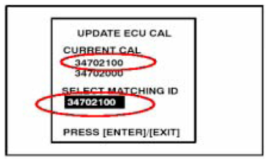 If the display shows a calibration ID of 34705100 or later, then the ENGINE ECU has already been reprogrammed.