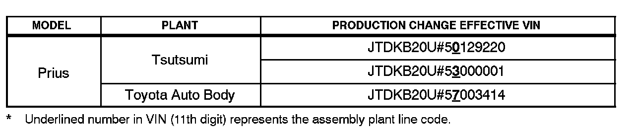 ^ 2005 model year Prius vehicles produced BEFORE the Production Change Effective VINs shown below.
