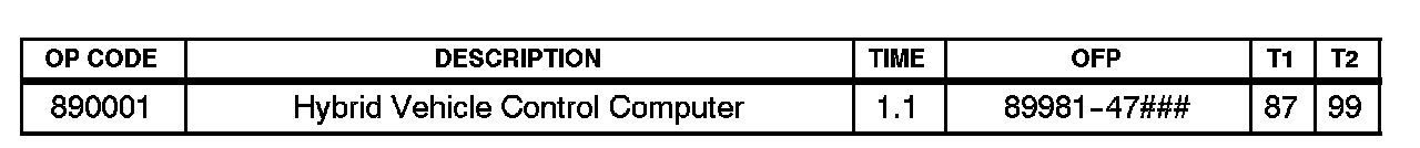 2. If the information contained in the freeze frame and information code data matches the parameters specified in the table above, remove and replace the Hybrid Vehicle Control ECU. Refer to the Technical Information System (TIS), 2004 or 2005 model year Prius Repair Manual: Hybrid Control System: Hybrid Vehicle Control ECU: Replacement