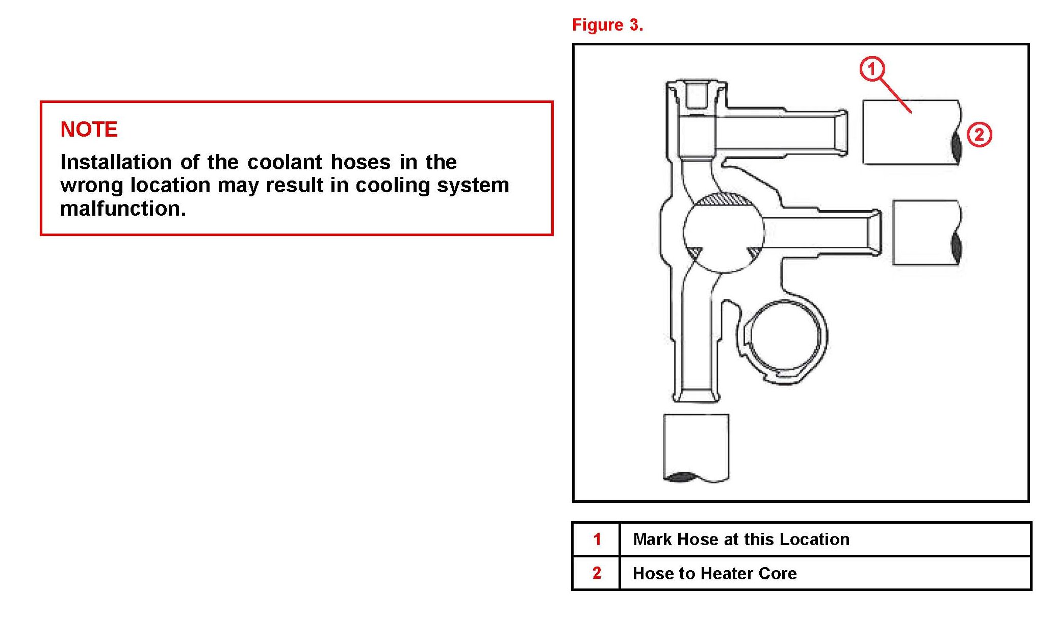 4. Mark the upper coolant hose (hose to heater core). Take note of the original location of all coolant hoses.
