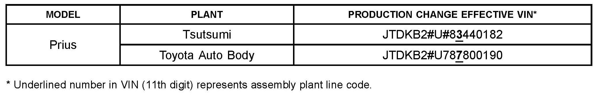 This TSB applies to vehicles produced BEFORE the Production Change Effective VINs shown.